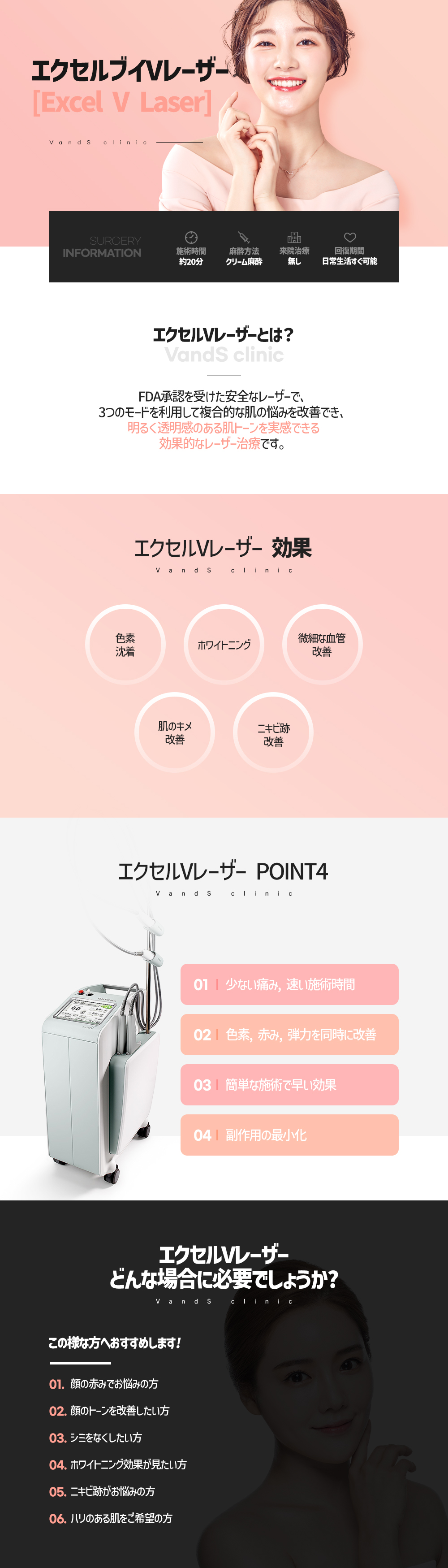 エクセルVレーザーは、3つのモードを用いて複合的な肌トラブルにアプローチし、 肌のトーンを明るく、透明感のある状態へ導くことができる効果的なレーザー治療です。